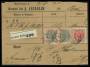 1875. Tofarvet, 20 Øre, rød/grå (par), tr. 1b, tyk omv. ramme, 8 Øre, grå/rød på privat adressebrev for 1 pakke 4 pund. Sendt fra København.
