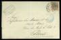 1875. Tofarvet 20 Øre, rød/grå, single på brev sendt fra KØBENHAVN, 3.12.1877 til Paris.