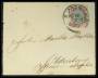 1875. Tofarvet 20 Øre, rød/grå, tr. 1b, single på brev annulleret 181×SJÆLL.P.B. og sendt til England, november 1876.