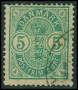 1882. 5 øre grøn tryk 2. Trykbestemmelse Jørgensen.