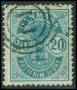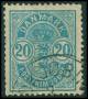 1882. 20 øre blå små tal med hvide pletter omkring M.