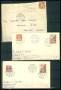 EXPRESBREVE. Planche med 3 breve og en telegram påtegnet URGENT = ekspres.
