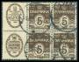 REKLAME. 5 øre brun Hafnia og Danske Phønix i 6-blok. AFA 800,-