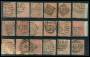 1862. 4 d. teglrød med små kontrolbogstaver x 18 med forskellige bogstaver. AFA 5700,-