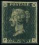 1840. 2 d. blå, A-J, pl. 1-76 med 3 brede range og tæt i nv-hjørne. SG. (5) 975 £