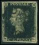 1840. 1 d. sort P - I småfejl. Attest PRS. AFA 2000,-