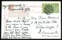 1911. 1½ d. grøn x 2 på postkort til Danmark annulleret med kork stp. sjældent.