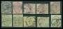 1883-84. 6 d. grøn x 15 i blandet kvalitet. AFA 21000,-