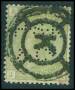 1877. 4 d. olivengrøn stp. K i cirkel og med perfin.