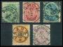 Planche med diverse våbentype inkl. perfin og småtal.