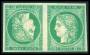 1849. 15 c. grøn tete-beche forfalskning uden lim fra Album De Facimiles med officielle forfalskninger udgivet af Philatelist Unionen i Geneve i 1928 i et oplag på kun 500 stk.