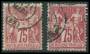 1876. 75 c. karminrød tp. I i 2 nuancer. AFA 2200,-
