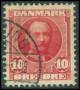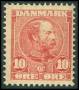 1904. 10 øre rød med variant: Eftergravering i portrætcirklen.