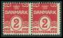 1905. 2 øre rød i par med varianter: Uden og delvis uden hjerter, sjælden.
