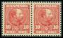 1912. 35/32 øre grøn i par med variant: Forskudt ornament.