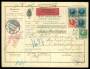 1907. Frederik VIII, 20 Øre, blå (3) m.m. på Adressebrev for 1 pakke 825 gram med opkrævning Seks Kr. 75 Øre. sendt fra København IX, 25.3.1909 til Trondhjem, Norge. Porto i alt 75 øre.