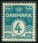 1905. 4 øre blå med variant: Plet i ovalbåndet.