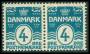 1905. 4 øre blå i par med variant: AR sammenhængende og F-fejl.