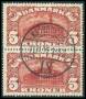 1915. 5 kr. posthus i lodret par med variant: Ovenlysvindue i taget under venstre tårn.
