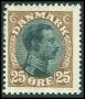 1918. 25 øre brun/sort med variant: Venstre 2-tal forbundet med cirkel. AFA 1200,-