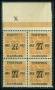 1918. 27/29 øre prov. i 4-blok med delvis overtryk i første mærke.