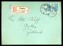 1930. Christian X, 25 Øre, blå (par), 5 Øre, grøn på rekommanderet brev sendt fra København 11, 1.4.1921 til Ålbjergagård, Sverige.