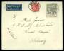 1929. Luftpost 50 Øre, grå, Karavel 15 Øre, rød på luftpostbrev sendt fra RANDERS, 12.1.1934 til Aargau, Schweiz. Et brugsbrev.