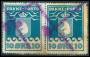 1905. 10 øre blå i par, højre mærke med svag tyndhed. AFA 9000,-