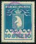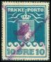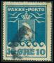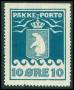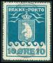 1910. 10 øre blå takket 3 sider med hjørnefold.