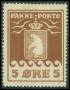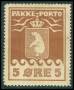 1910. 5 øre lysbrun takket 3 sider. AFA 6200,-