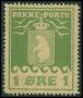 1915. 1 øre olivengrøn takket 3 sider pragt stp.