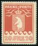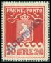 1915. 20 øre rød x 2 på klip med sort skjold stp. Julianehåb. (01.05)