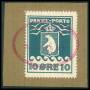 1937. 10 øre grønblå på klip med rødt oval stp. Udstedet Sangmissok.
