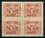 1947. 5 fr. rødbrun, gullig i 4-blok. AFA 2000,-