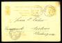 1891. Dobbelt Brevkort, 10 Centimes, orangegul. Sendt fra GREVENMACHER 6.1.91 til Aarhus i Danmark. Svarkortet er ubrugt.