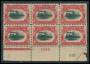 USA. 1901. 2 c. karmin/sort i marginal 6-blok. Sc. 325 $
