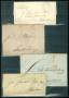 Planche med 4 prefil breve. Sendt til Glostrup (Ridder af Dannebrog), til Sakskøbing og til Randers. Det ene med streg for vægtkontrol.