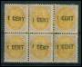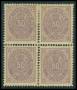 1885. 50 c. mat gråviolet tryk 2 i sammenholdt 4-blok. AFA 9600,-