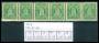 1875. 32 øre grøn tryk 4 pos. 41-46 i 6-stribe. AFA 4200,-