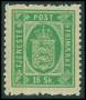 1871. 16 sk. grøn linietakket. Sign. Bühler. AFA 4000,-