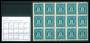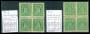 1875. 32 øre grøn og gulgrøn tryk 2 og 3 i 4-blokke. Attest GLN. AFA 2480,-