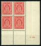 1916. 4 øre blå i marginalblok no. 41-0, fejl i marginal. AFA 2200,-