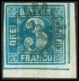 BAYERN. 1849. 3 kr. blå i hjørnemarginal.