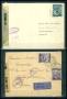 1947. Tre censurbreve. Alle sendt til Danmark. Det ene med engelsk censur og tysksproget banderole.