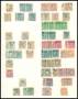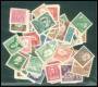 Lomme med diverse mærker med sammenklæbet papirbane.