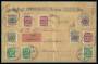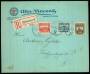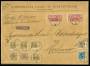 1912-15. Pengepostbrev frankeret med flere provisoriemærker, sendt fra København 24-5-1918 til Stokholm med 14.000 kr. indlagt og eftertalt- porto 5,57 kr. Brevet har fold på midten og med trekantsåbn...
