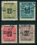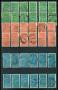 1912. 5 kr. posthus x 2 den ene med variant: 2 hvide pletter i øvre snoning, 100 øre gulbrun Frederik VIII x 4, 1 kr. gulbrun Chr. X x 2, 20 øre blå og 25 øre brun Chr. X alle med perfin D på værdibre...