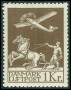 1929. 1 kr. brun med variant: Brud på venstre vinge, velcentreret. AFA 4.500,-