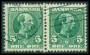 1905. 5 øre grøn i par med variant: D i Danmark retoucheret.